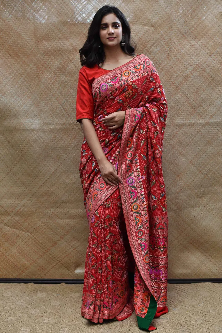 Pattern: Traditional Bandhani Tie-Dye with Mirror Border