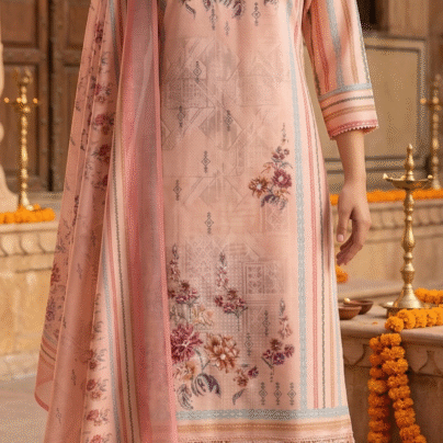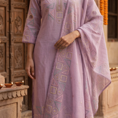 Dusty Rose Embroidered Kurta Set with Dupatta