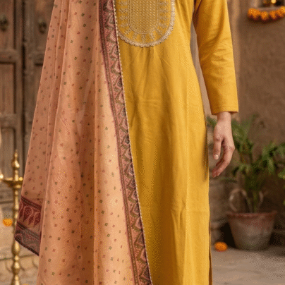 Mustard Floral Embroidered Kurta Set