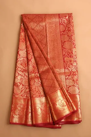Pattern: Traditional Kanjivaram Weave with Floral & Temple Motifs