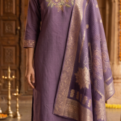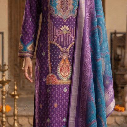 The set comes with matching lime green pants that have the same rose prints and a stylish patterned border at the bottom. It also includes a soft, lightweight scarf (dupatta) with a mix of zigzag lines and small dots. This outfit is perfect for summer parties, daytime events, or festive celebrations.