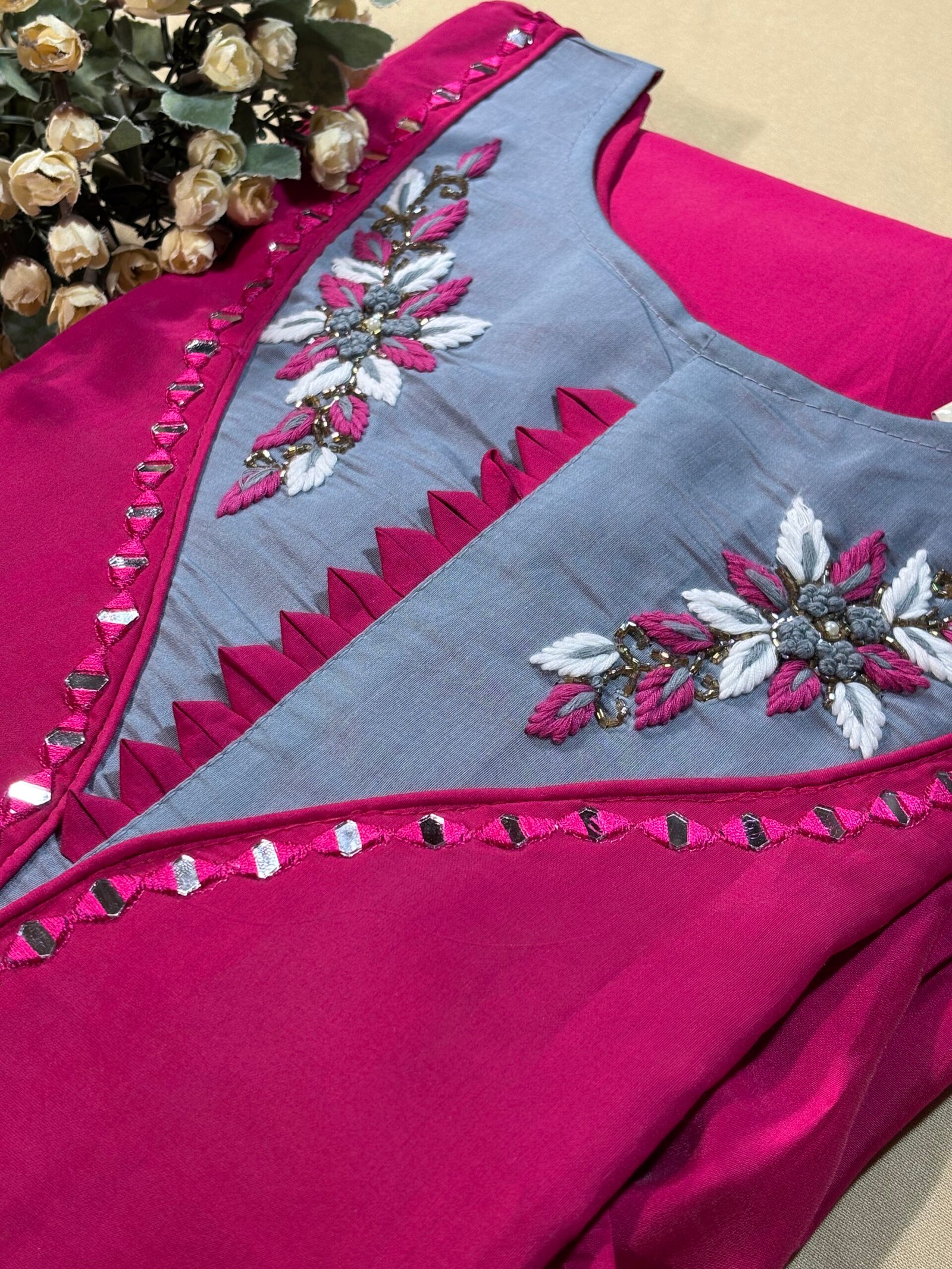 Be the first to review “Magenta Pink Kurta Set with Slate Grey Embroidered Yoke” Cancel reply