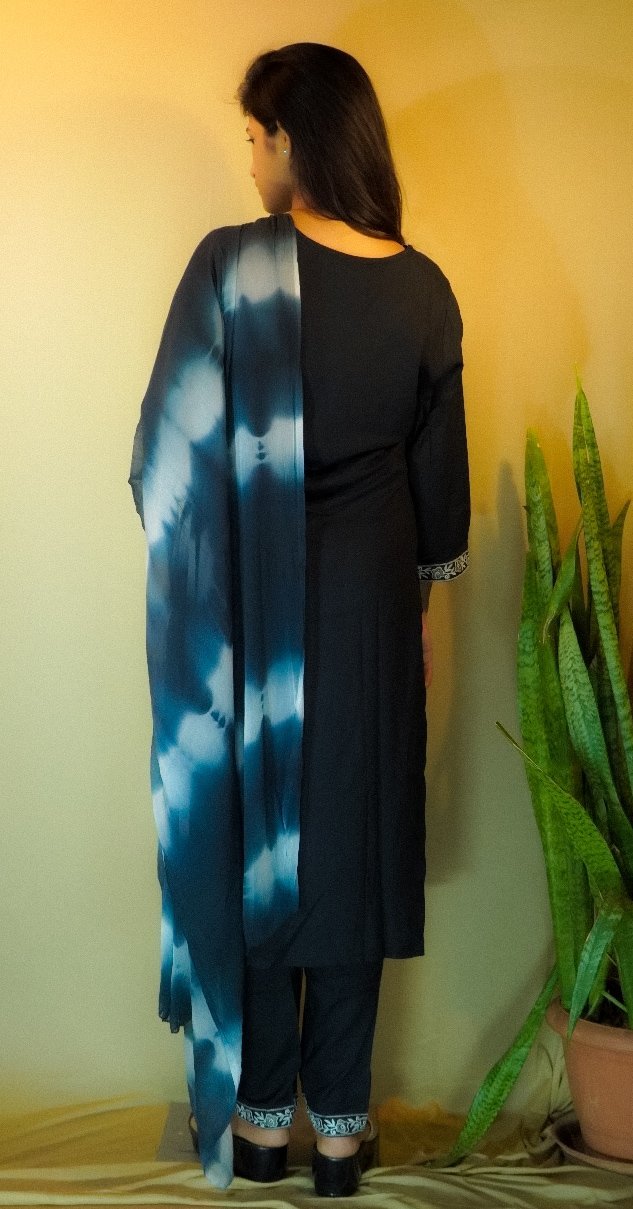 Obsidian Black Embroidered Suit with Shibori Dupatta
