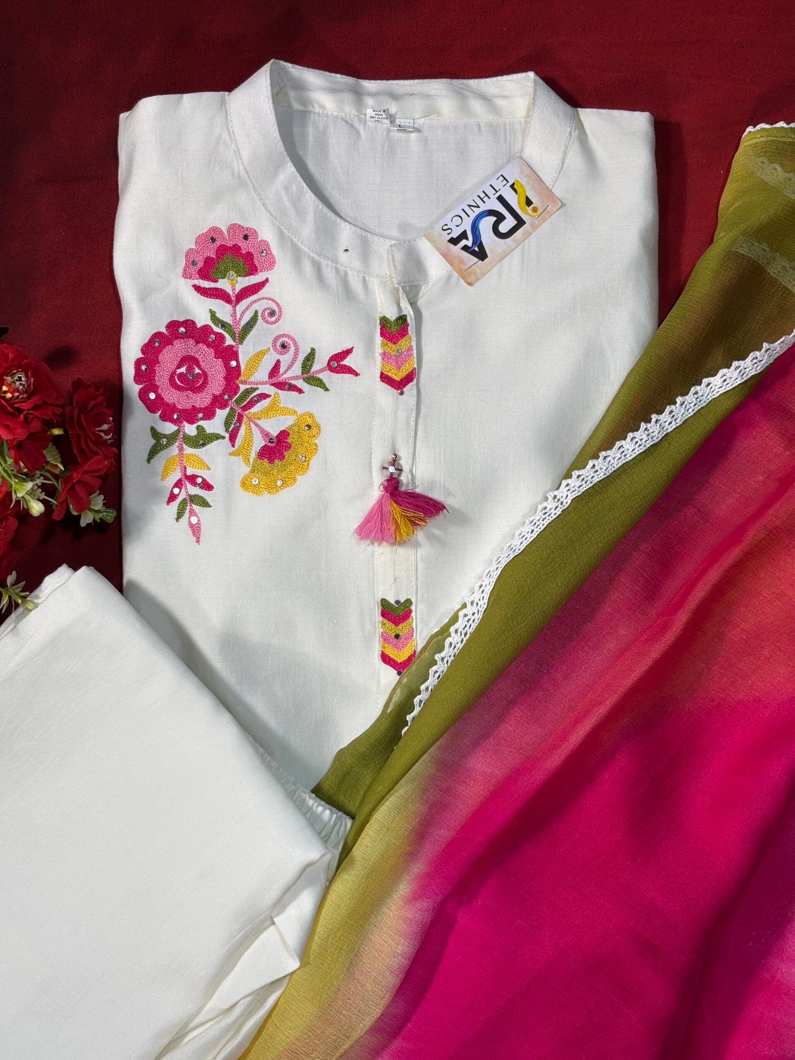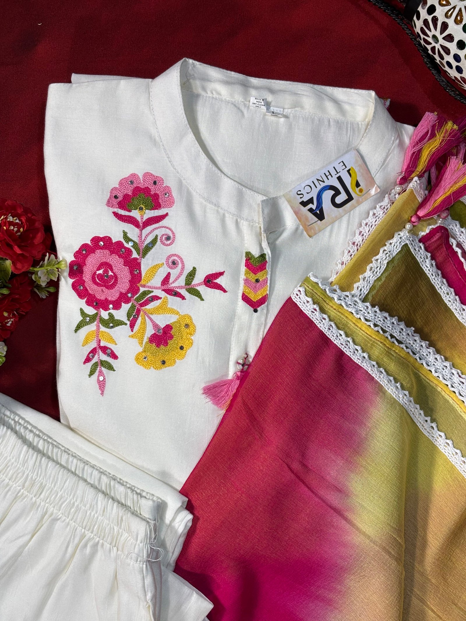 Be the first to review “Off-White Kurta Set with Floral Embroidery” Cancel reply