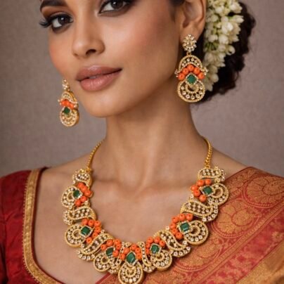 (0)Gold-Tone Designer Necklace Set with Coral Beads