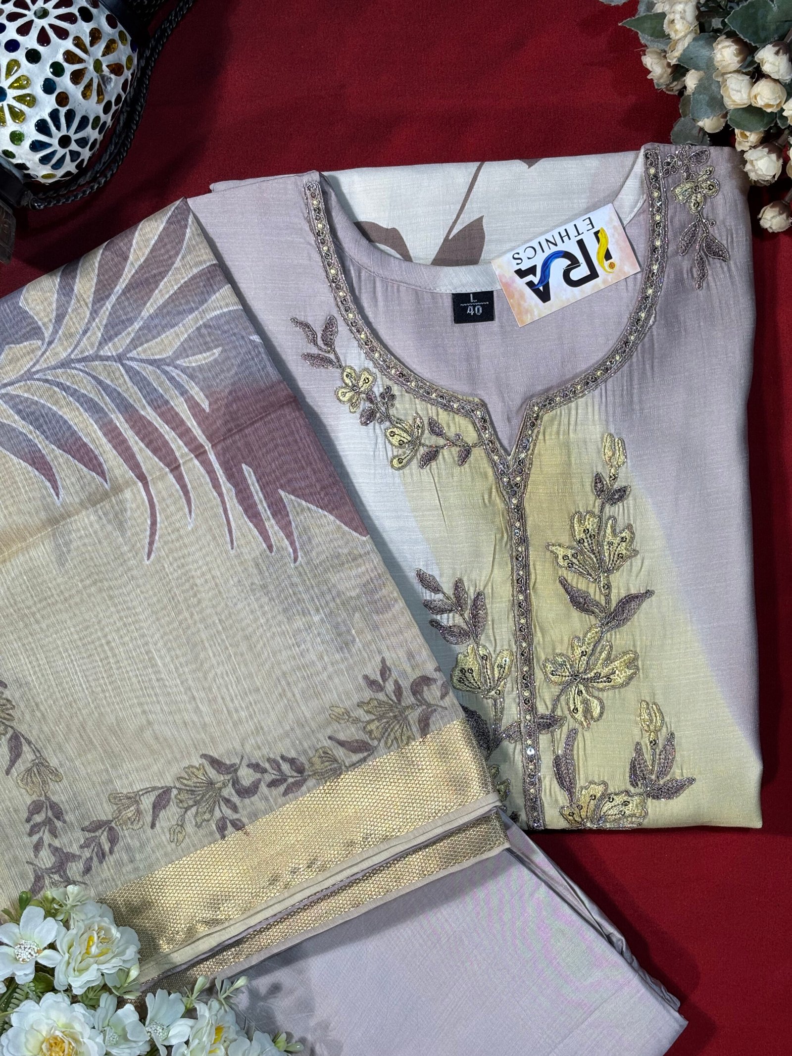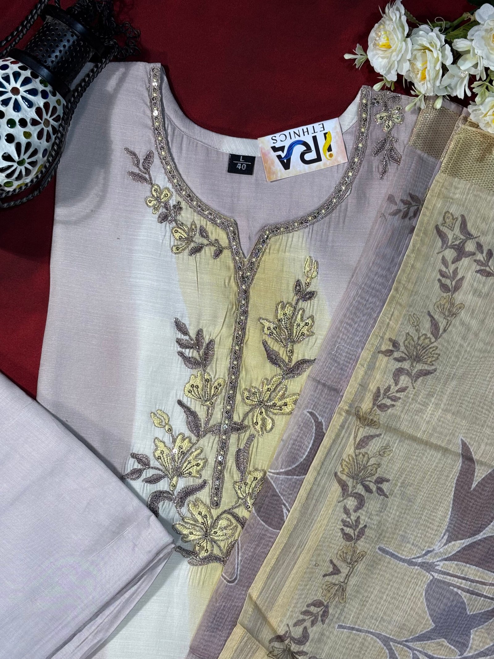Be the first to review “Pastel Grey Kurta Set with Floral Embroidery” Cancel reply