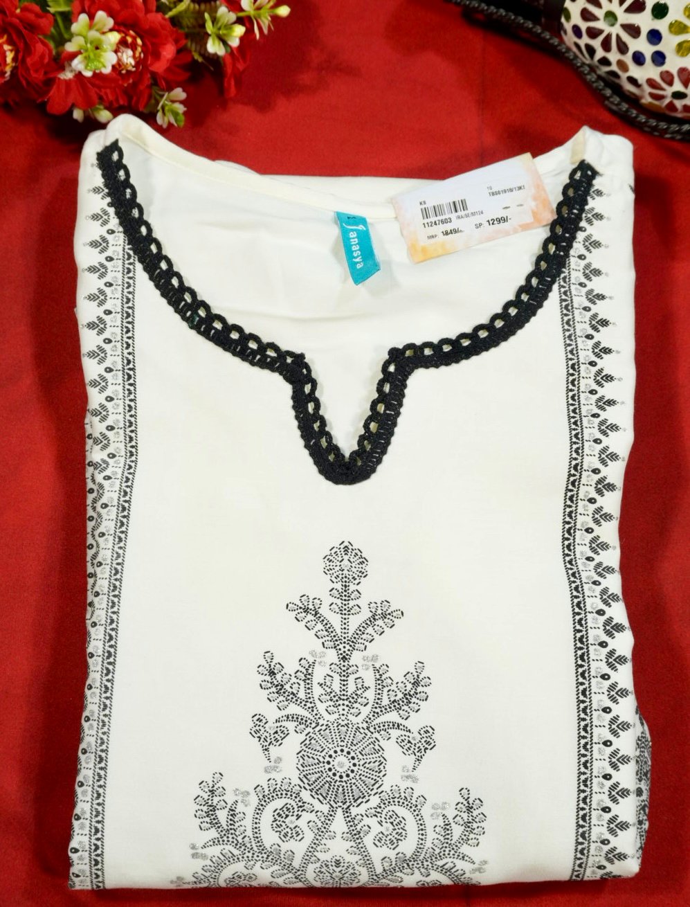This item: Women’s Off-White Kurti Set with Black Embroidered Neckline