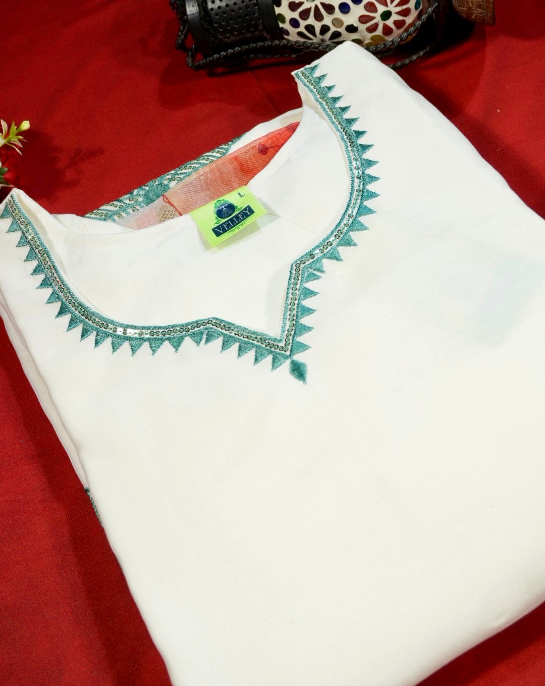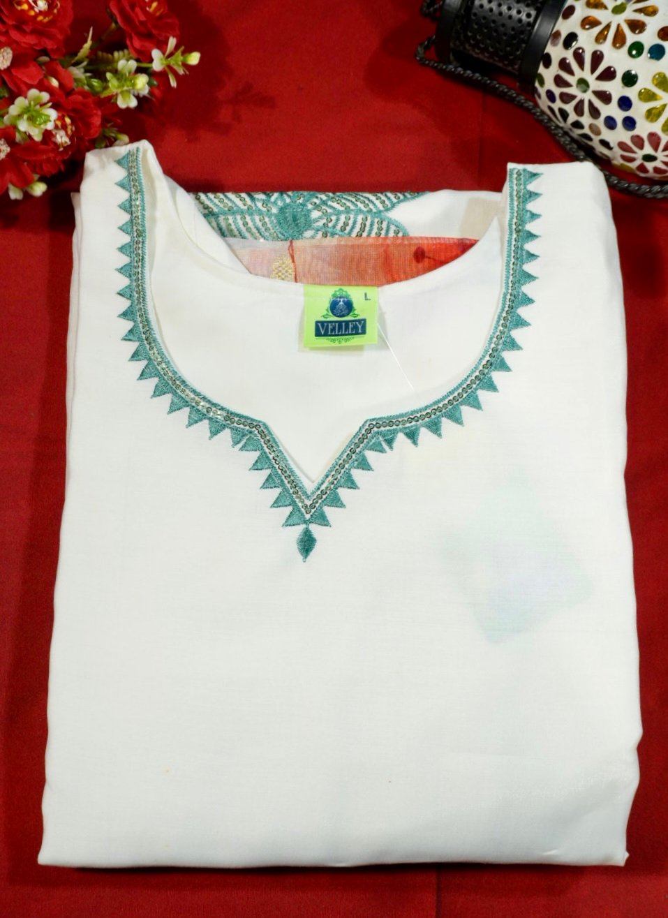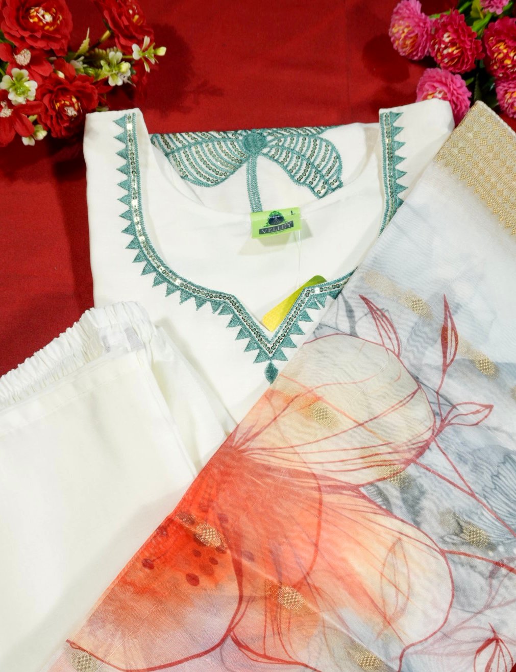 Be the first to review “Women’s White Embroidered Kurti Set with Printed Dupatta” Cancel reply